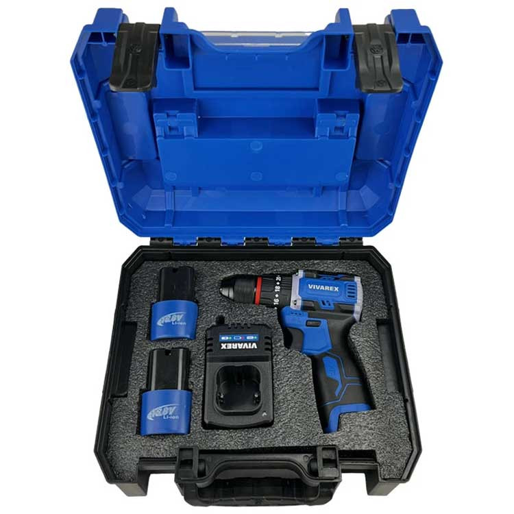 در کنار دریل شارژی ویوارکس مدل VR1608 اقلام دیگری از قبیل دو عدد باتری 1500 وات، شارژر، دفترچه راهنما و کیف ضد ضربه از جنس BMC عرضه می شود.