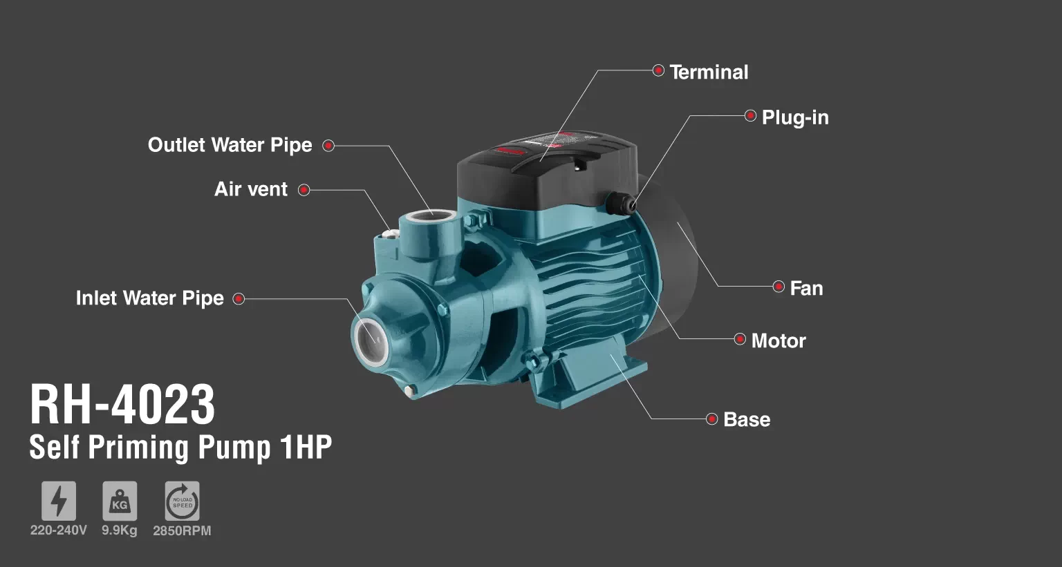 پمپ آب محیطی رونیکس مدل RH-4023، یک الکتروپمپ ۱ اسب بخاری قدرتمند و جمعوجور است که برای مصارف خانگی، صنعتی و آبیاری باغها طراحی شده است. این پمپ با قابلیت مکش آب تا ارتفاع ۸ متر و توانایی ایجاد هد تا ۶۵ متر، عملکرد مؤثری در انتقال آب تمیز و عاری از ذرات دارد. بدنه چدنی پمپ، شفت استیل، پروانه برنجی و سیل مکانیکی از جنس سرامیک/گرافیت، همگی نشاندهنده دوام و راندمان بالای این دستگاه هستند.