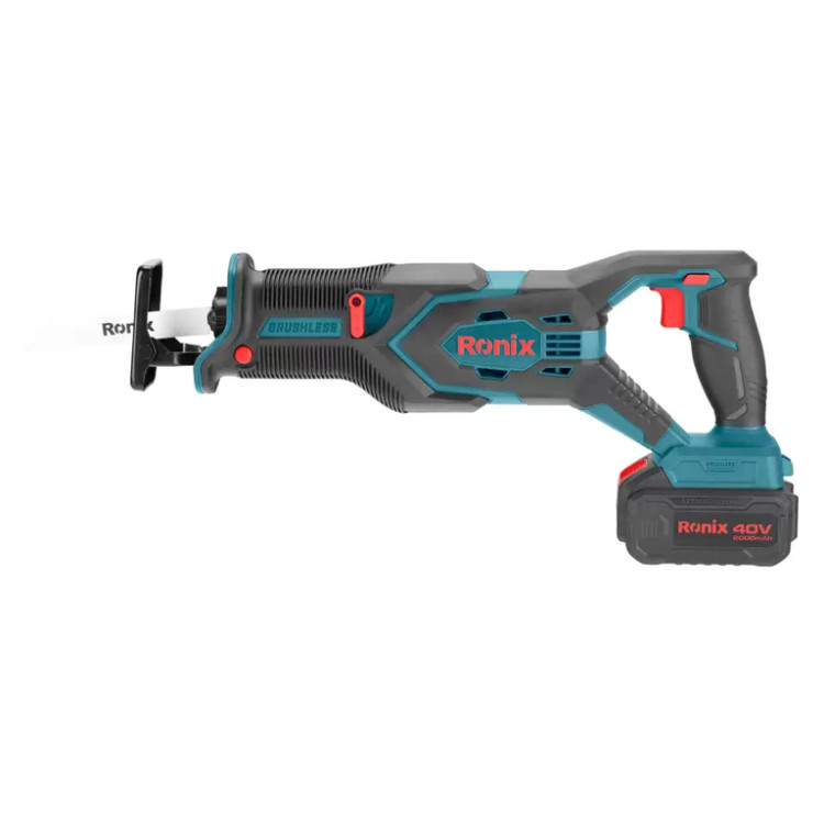 اره افقیبر شارژی 40 ولت رونیکس مدل 8904 با موتور براشلس قدرتمند 40 ولتی تا 3000 حرکت رفت و برگشتی در دقیقه را انجام میدهد. طراحی سبک و ارگونومیک این ابزار، باعث لرزش بسیار کم این ابزار میشود و دسته خوشدست آن، کنترل بیشتر و خستگی کمتر در حین کار را به همراه دارد.